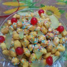Sciogliere il lievito nell'acqua,aggiungere:uova,burro,farina,zucchero,vaniglia e scorza di limone.