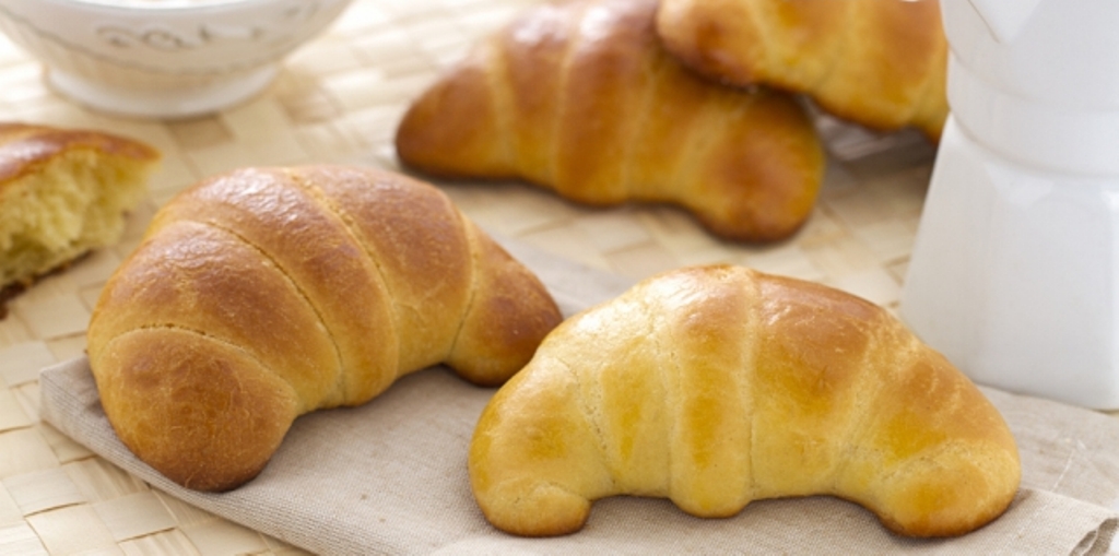 Le brioches sono morbidissimi e soffici cornetti di pasta lievitata, a base di zucchero, uova e burro, spennellati con panna e uovo e cotti in forno dopo una lunga lievitazione.