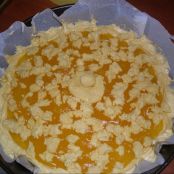 Versare la marmellata calda sull'impasto. Modellare l'impasto dei bordi in modo che la marmellata non fuoriesca dalla base e poi creare le decorazioni. Io personalmente creo una decorazione centrale con una o due palline di impasto e poi utilizzo il resto sbriciolandolo e cospargendolo su tutta la torta.