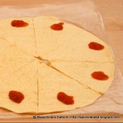 Stacca lo spicchio dal testo della pasta e arrotolalo dalla parte più larga facendo in modo che la punta finisca attaccata sulla parte bassa del cornetto.