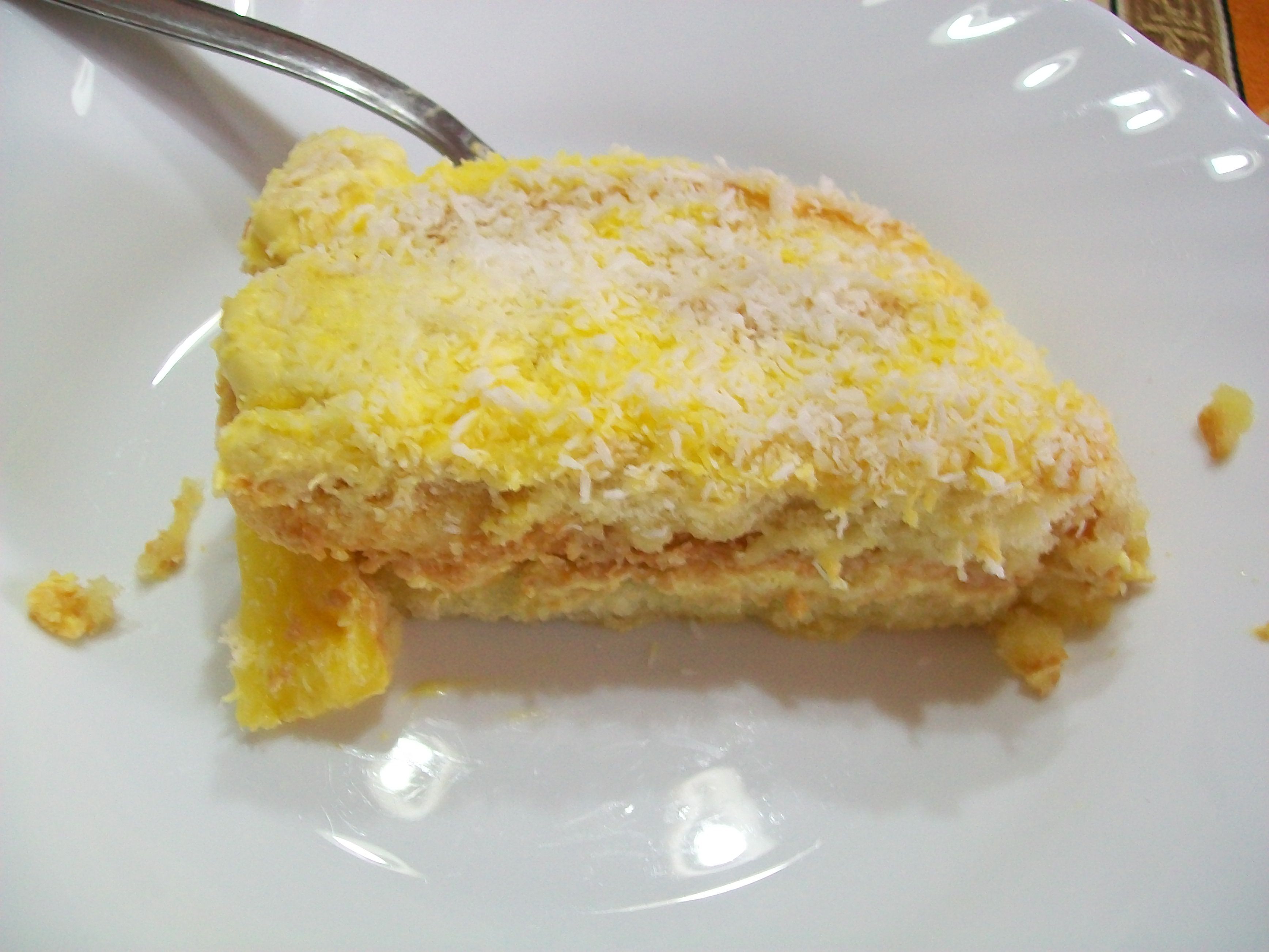 Immergete i savoiardi nel succo e disponeteli in una pirofila. Coprite poi con la crema e fate un altro stato. Completate con la crema e spolverate con polvere di cocco. Mettete in frigo per almeno due ore dopodiché potete servirlo.