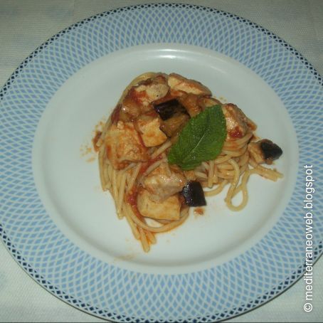 Di tutti i primi piatti quello con il pesce spada è sempre tra i più superbi, l'abbinamento poi con le melanzane e le foglie di mentuccia la catapultano subito alla top della gastronomia siciliana. La ricetta è molto semplice, come per tutte le ricette di pesce, quasi tutto il successo dipende dal pesce che deve essere freschissimo.