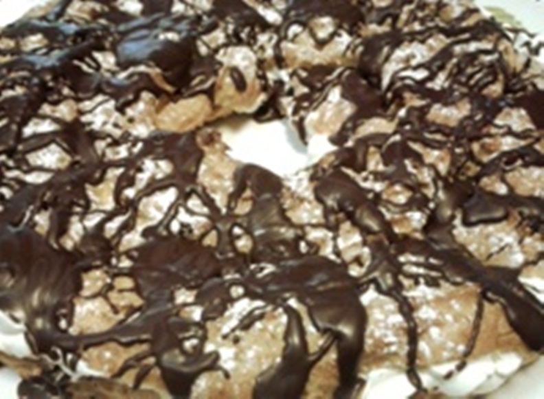 Tagliare il dolce in due e ricoprirlo di nutella e panna precedentemente montata,coprire con l'altro disco e cospargere di zucchero a velo e glassa di cioccolato.