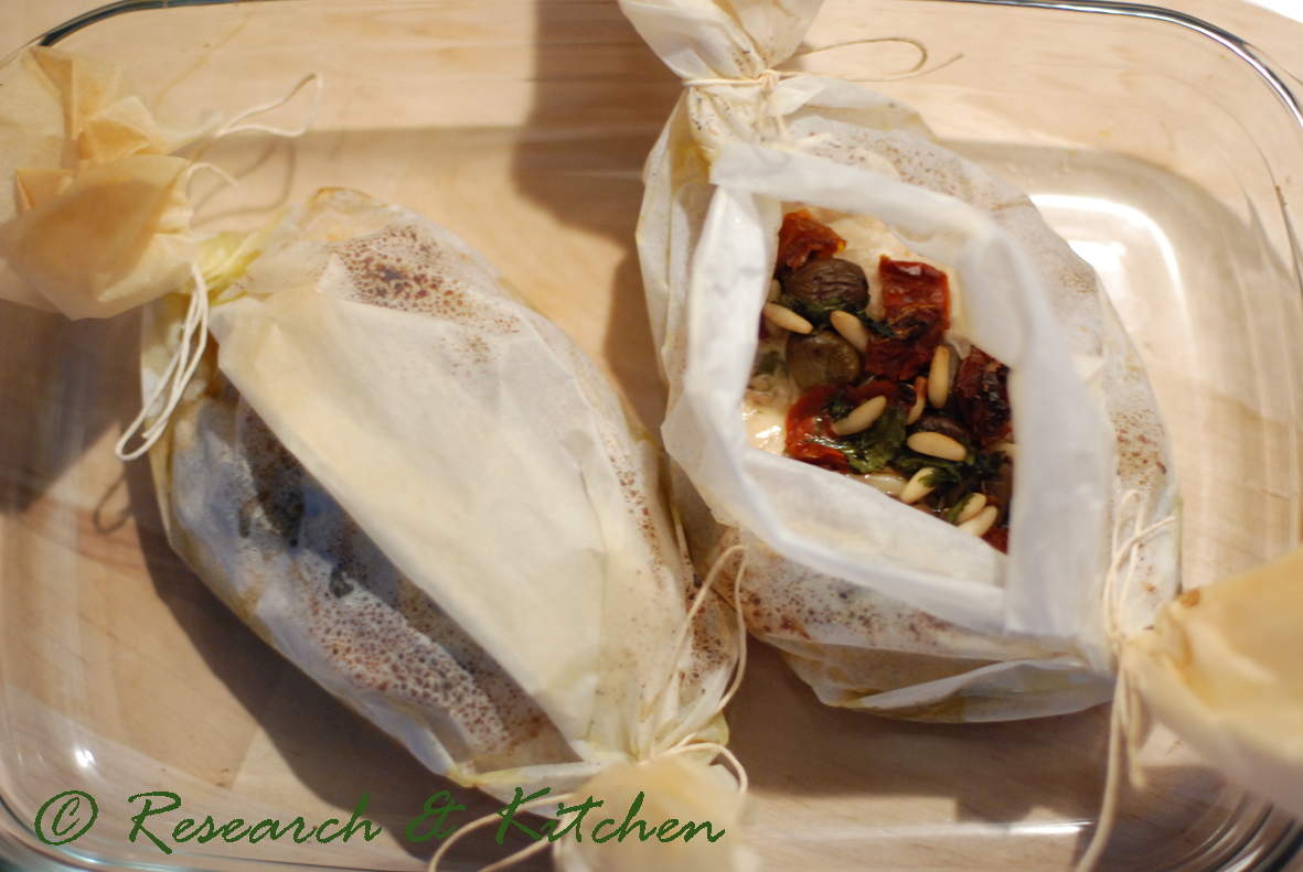 Collocare i pesci nella carta forno con tutti gli ingredienti ben disposti dividendo la fetta di limone in due metà ungere con l’olio, sale e pepe q.b.. Chiudere bene i cartocci e cuocere in forno moderato per 18 – 20 min il cartoccio deve diventare scuro senza bruciare.