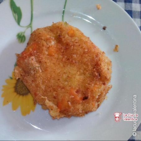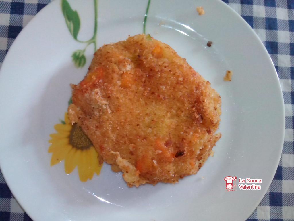 Lavare, pulire e tagliare a pezzetti carote e zucchine, quindi cuocerle in una pentola antiaderente, con poco olio e acqua. Lessare le patate e pulirle ancora calde. Passarle nello schiacciapatate e sistemarle in un contenitore. Aggiungere sale, pepe, formaggio, verdure e uovo. Impastare il tutto ottenendo un composto compatto ed omogeneo. se risultasse un pò secco aggiungere poco latte. Formare le schiacciatine di patate e passarle da entrambi i lati nel pan grattato. Mettere le schiacciatine in una pentola antiaderente con un filo di olio e cuocere a fuoco moderato. Servire caldo.
