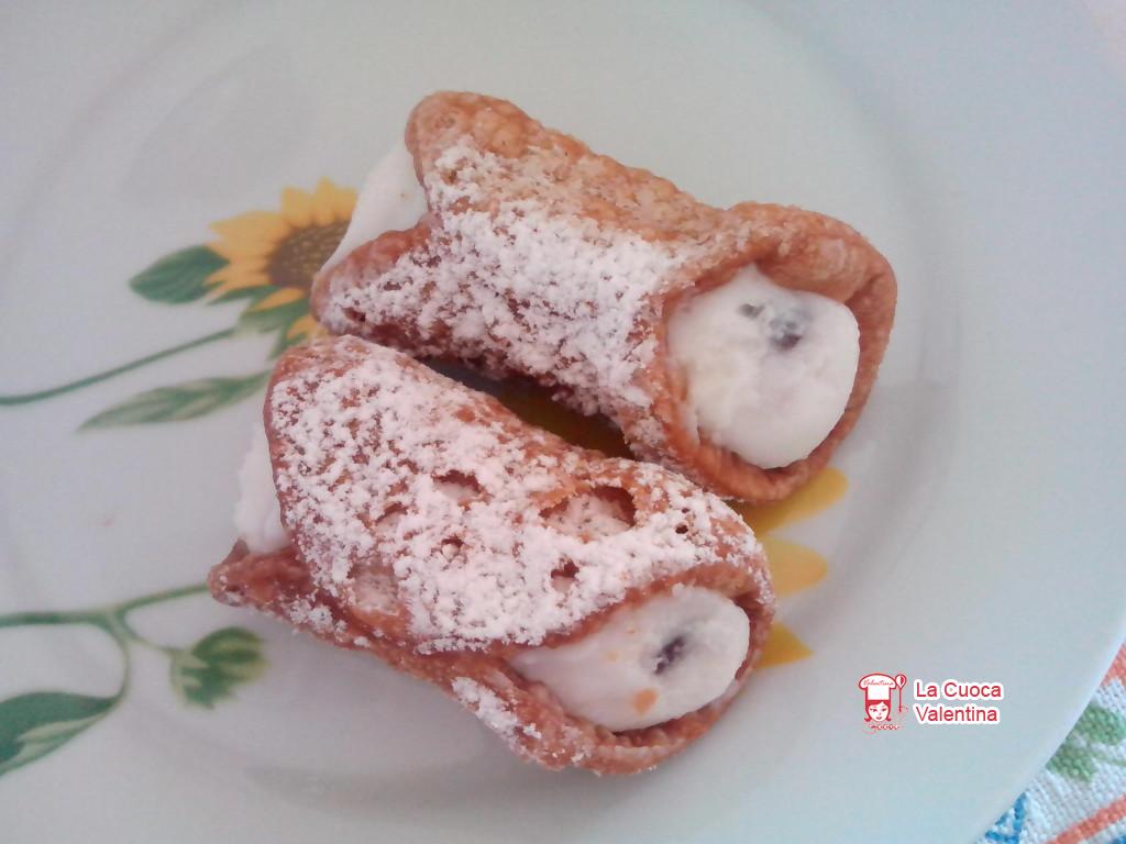 I cannoli siciliani, sono dei dolci a base di una cialda, che viene fritta e croccante, che viene farcita con ricotta, cioccolato, canditi e zucchero a velo. I cannoli sono dei dolci, che nell’antichità venivano preparati per il periodo di Carnevale, ma che oggi si trovano nei banconi delle pasticcerie, tutto l’anno. Io preparo i cannoli durante il periodo di Natale, perché mi piace regalarli agli amici.