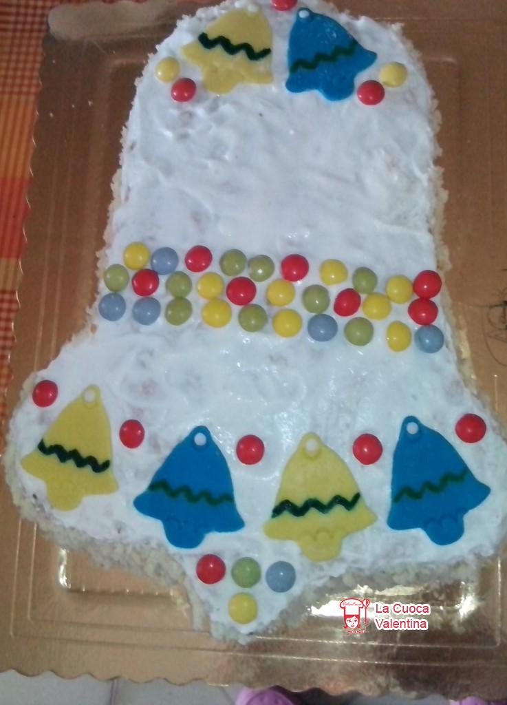 La torta campanella è una torta a base di pan di spagna, farcito con crema pasticcera e fragole. Per dare la forma della campanella, ho disegnato una campana e poi fatto un’ingrandimento. Ho preparato il pan di spagna , il giorno precedente, e poi l’ho tagliato seguendo l’immagine.