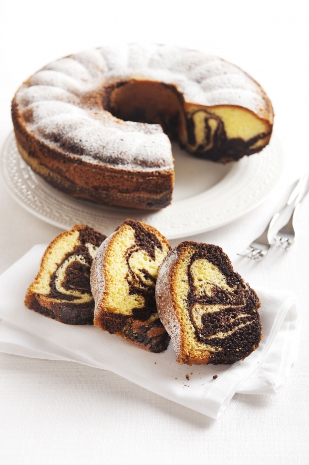 Versiamo quindi nella nostra tortiera già imburrata prima l'impasto chiaro e poi quello scuro.