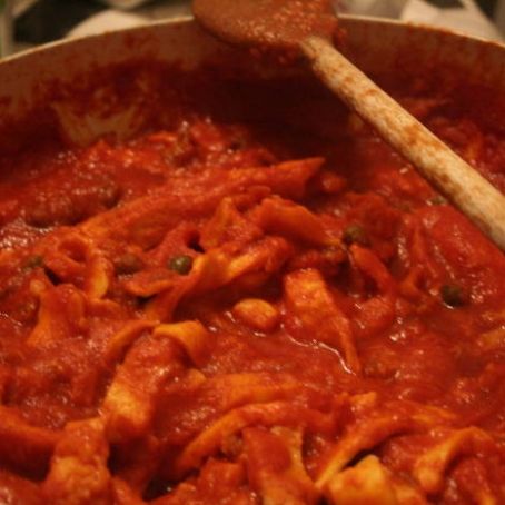 Tagliare la frittata a striscioline e aggiungere al pomodoro e far cuocere circa 5 min.