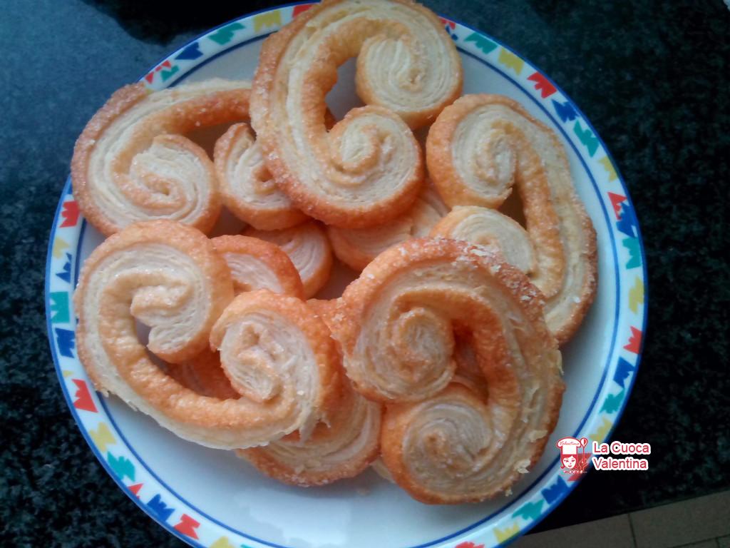 Per preparare questi magnifici dolcetti, bisogna infarinare il piano di lavoro e stendere un poco la pasta sfoglia, con l’aiuto di un mattarello. A questo punto in un contenitore unire cannella e zucchero, quindi spolverare la pasta sfoglia. Passare sullo zucchero il mattarello, per farlo ( lo zucchero ) aderire sulla sfoglia. Iniziare ad arrotolare da entrambi i lati la pasta sfoglia, fino ad arrivare al centro, quindi ottenere due cilindri arrotolati uno verso l’altro. Prendere un coltello senza seghetto, ed iniziare a tagliare le fette non troppo spesse. Foderare la placca del forno e sistemare i dolcetti, quindi cuocere in forno preriscaldato, fino a doratura desiderata (10-15 minuti). Sfornare e sistemare i ventagli su un vassoio facendo raffreddare bene, prima di consumarli.