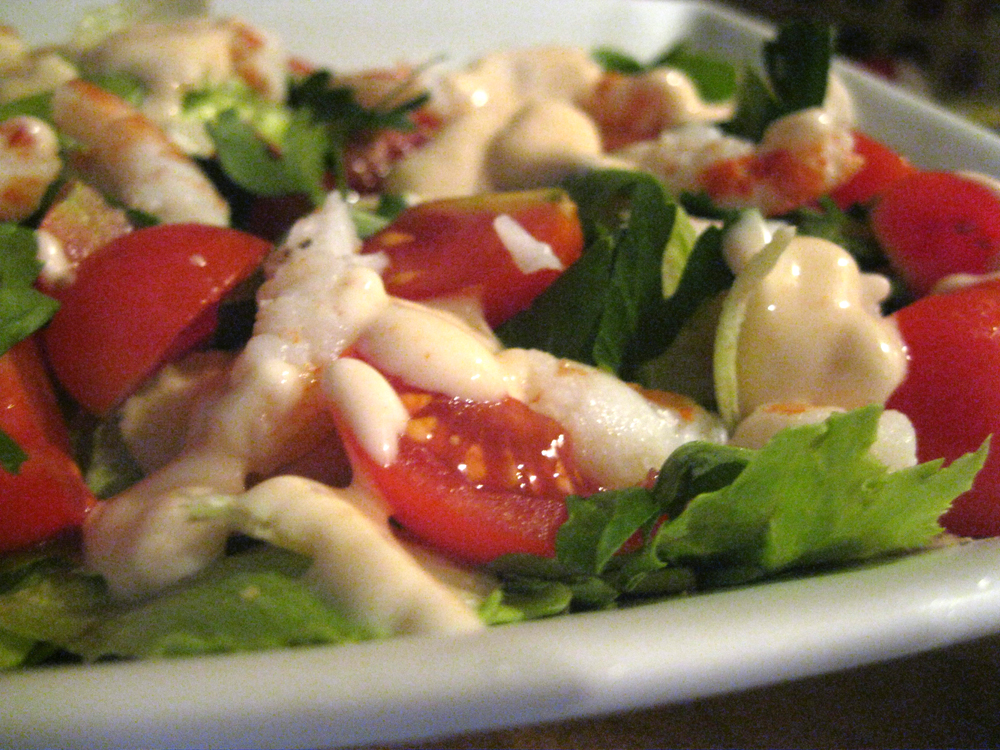 Ho servito con un’insalatina semplice di lattuga brasiliana, prezzemolo, pomodori, condita con una salsina di maionese e tabasco.