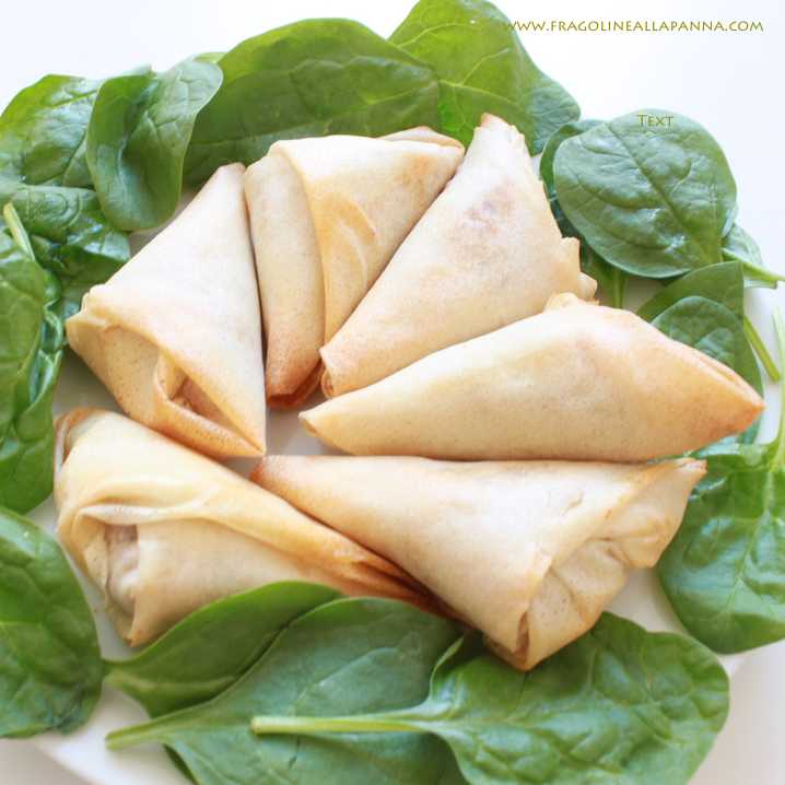 Dividete un rotolo di pasta sfoglia rettangolare in 8 parti e su ogni metà dei rettangoli ottenuti, disponete un cucchiaino pieno di ripieno. Piegare la sfoglia a metà per richiuderli.