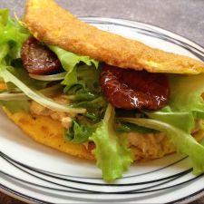 Servire subito la frittata filante di patate accompagnandola con un’insalata di pomodorini freschi.