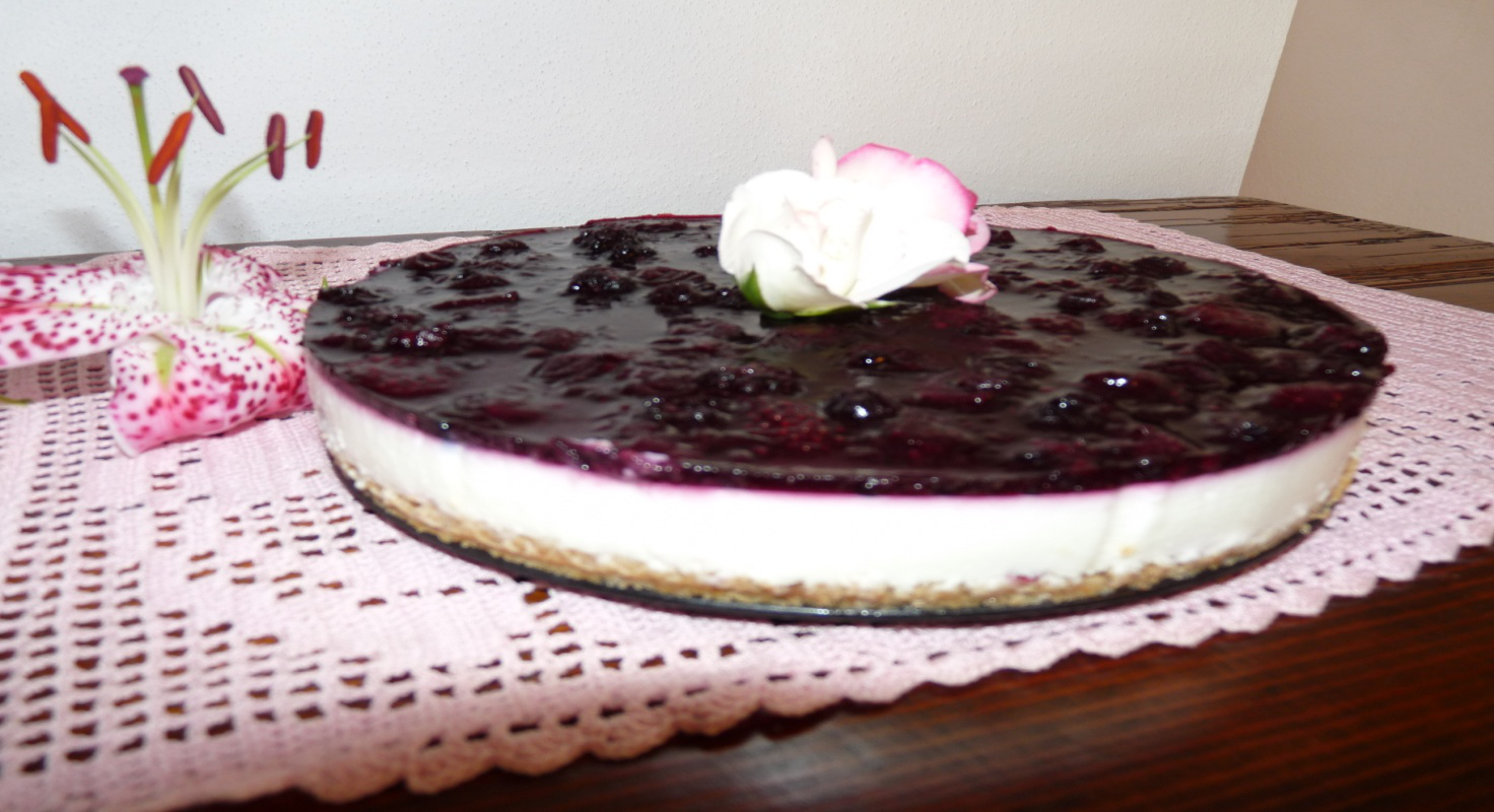 Versare la crema di formaggio sulla base di biscotto e livellarla bene, mettere poi a rassodare in frigo per almeno un paio d'ore.