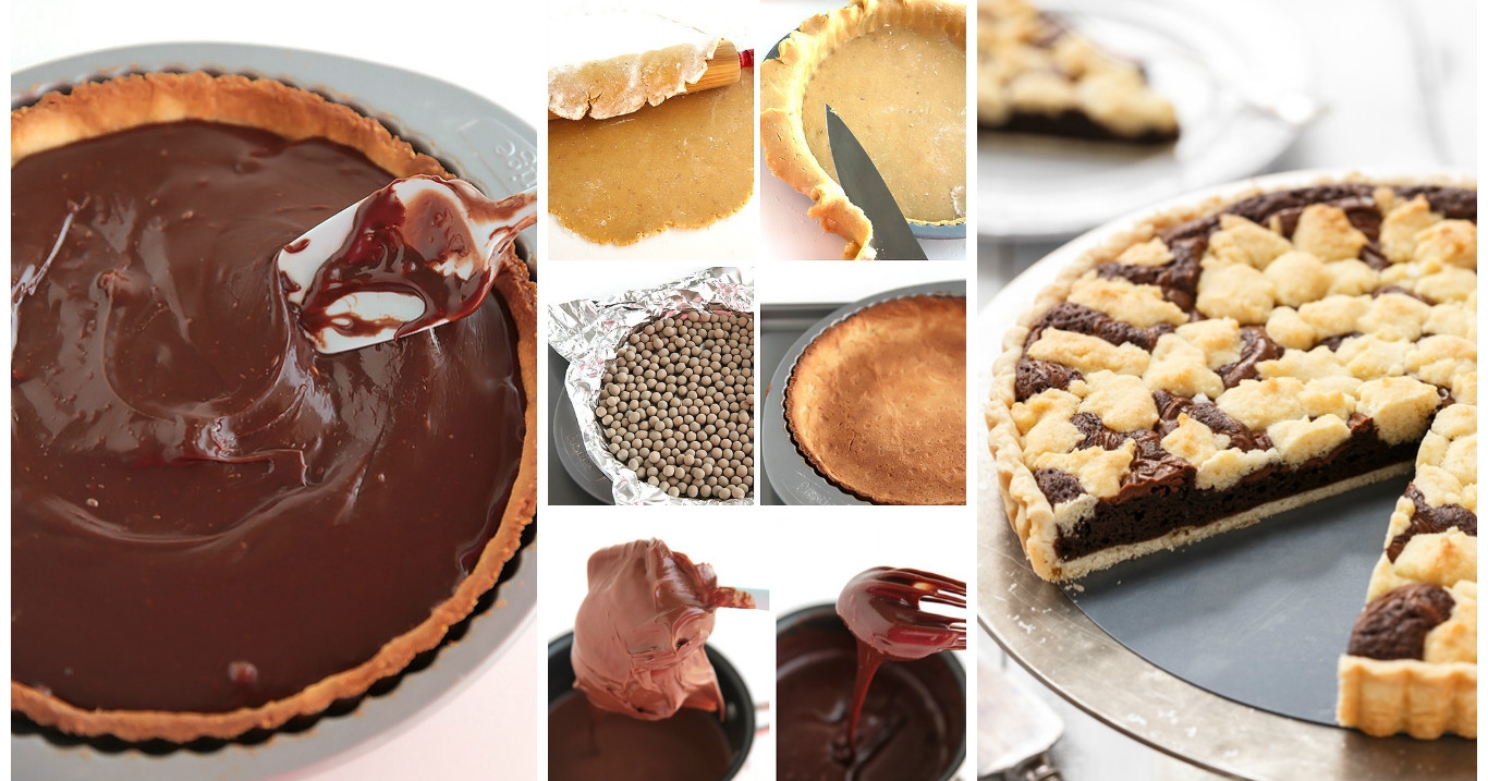 La prima cosa da fare per preparare la crostata alla Nutella, è la pasta frolla (vedi ricetta). Una volta che avrete preparato la pasta frolla, avvolgetela in un foglio di pellicola trasparente e lasciatela rassodare in frigorifero per almeno 2 ore. Trascorso il tempo necessario per far rassodare la pasta frolla, stendetene 2/3 con un mattarello (tenete da parte 1/3 di frolla che vi servirà per realizzare le classica decorazione a griglia) e arrivate allo spessore di 3 mm: posizionatela in una teglia del diametro di 24 cm meglio se di ceramica o antiaderente (non ci sarà bisogno di imburrare ed infarinare). Bucherellate il fondo della pasta frolla con i rebbi di una forchetta, e quindi con un cucchiaio spalmate la Nutella e ripiegate i bordi della crostata verso l’interno.