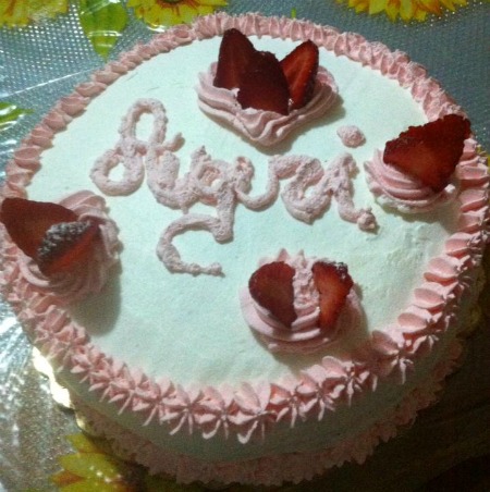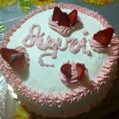Dividete la torta in due dischi ; cospargete la bagna su tutta la superficie del primo disco ( che nn deve essere troppo bagnato!); aggiungete la crema chantilly, le fragole, precedentemente lavate,tagliate a pezzi e sciroppate con zucchero.