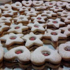 Quando sono freddi prendete i dischi interi e spalmatevi la marmellata o la nutella e ricoprite con i biscotti forati. Infine spolverateli con lo zucchero a velo.