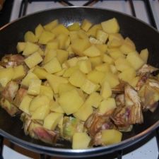 pulire i carciofi e tagliarli a fettine. metterli nell'acqua fredda con il succo di mezzo limone. prendere una pentola e aggiungere l'olio per il soffritto. dopo di che scolare i carciofi e aggiungerli all'olio lasciandoli soffriggere per 10-15 minuti. aggiungere il vino e lasciar sfumare. aggiungere cipolla, prezzemolo, sale e soffriggere per cinque minuti. in un'altra pentola, scaldare mezzo litro di acqua con mezzo dado.aggiungere il riso ai carciofi e lasciar cuocere per 20 minuti, girando di tanto in tanto e versando un pò alla volta l'acqua calda con il dado.una volta cotto il riso, spegnere il fornello a aggiungere una noce di burro e parmigiano. lasciar sfreddare e servire tiepido
