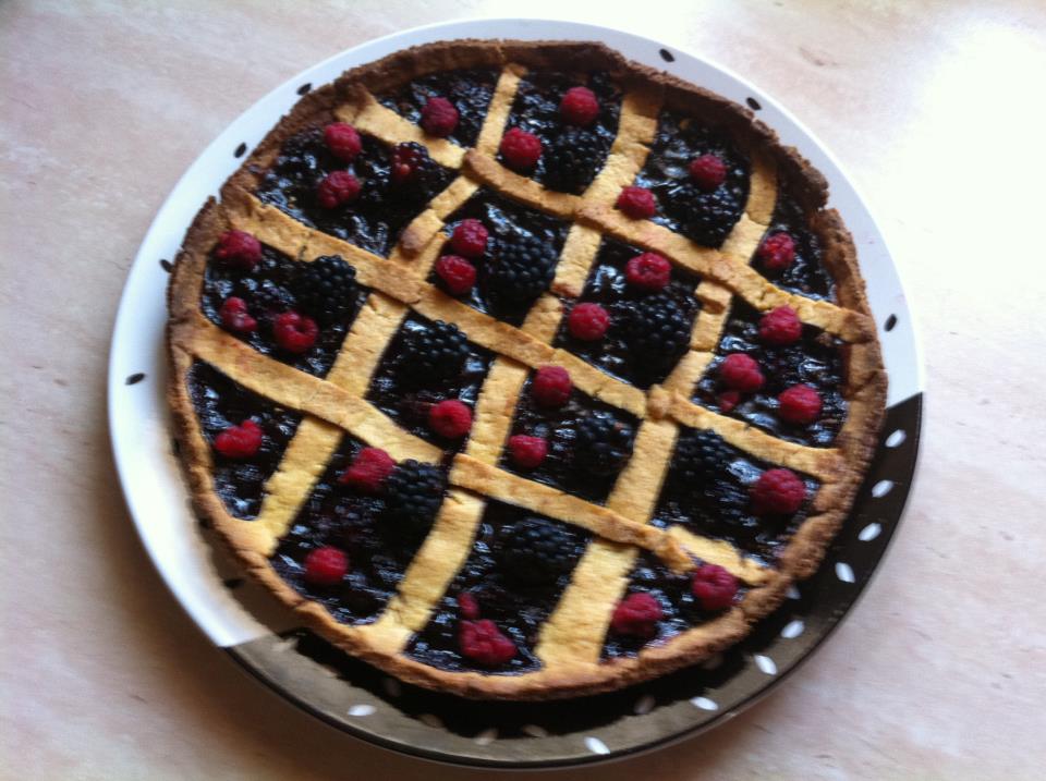 SUL PIANO DI LAVORO INFARINATO STENDETE LA PASTA IN UNA SFOGLIA SOTTILE, CHE USERETE PER FODERARE LA BASE DELLA CROSTATA. INFORNATE PER CIRCA 30 MINUTI, DOPODICHE' FATELA RAFFREDDARE A TEMPERATURA AMBIENTE.