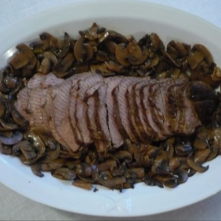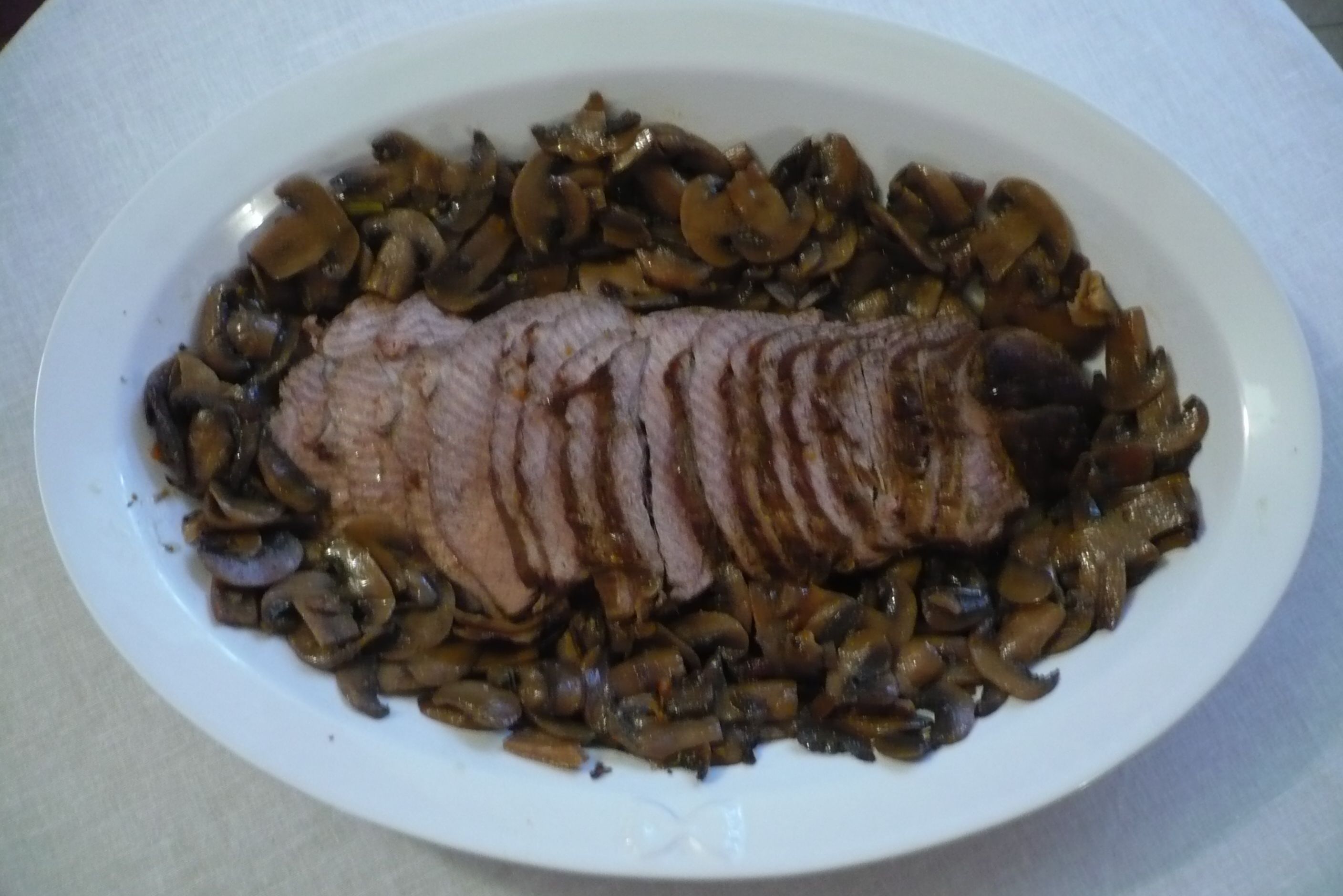 Far rosolare bene i funghi, per renderli croccanti. Se si desidera accompagnare l'arrosto da una soffice crema, si possono frullare un po' di funghi con il brodo dell'arrosto.