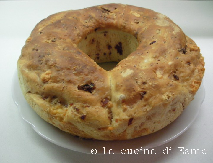 Tagliate a pezzettini il salame, i formaggi e le uova sode e mescolateli bene tra loro. Prendete la pasta lievita e allargatela con le mani versateci sopra un paio di cucchiai del ripieno preparato e impastate bene, ripetete l’operazione un altro paio di volte ( o comunque fino a quando non vi saranno rimasti 3 o 4 cucchiai di ripieno) a questo punto cercate di dare all’impasto una forma il più possibile rettangolare. Disponete su tutta la superficie il ripieno rimasto e arrotolate con delicatezza la pasta su se stessa.Ungete di burro uno stampo largo con il buco centrale; disponetevi il rotolo di pasta e unite bene le estremità Rimettetelo a crescere in luogo tiepido coprendolo con un panno. Quando il casatiello avrà lievitato (circa tre ore) infornatelo in forno statico già caldo a 200° per un’ora circa. Servitelo almeno dopo tre ore che lo avete sfornato.