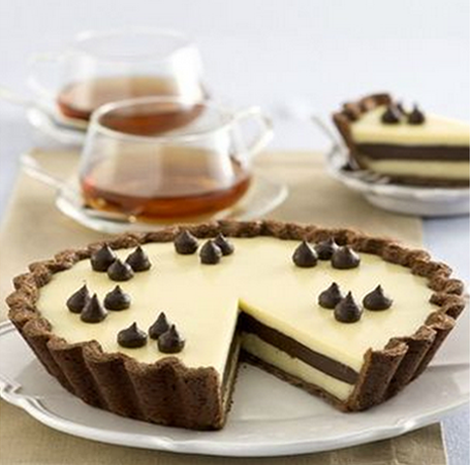 Usa uno stampo scanalato imburrato e cosparso con cacao. Preparate la pasta con la farina, i tuorli e il cacao setacciati, lo zucchero e 150 g di burro freddo a pezzetti; formate una palla, avvolgetela nella pellicola e fatela riposare in frigorifero per un'ora. Stendete la pasta in una sfoglia spessa 5 mm e trasferitela nello stampo foderate il guscio di pasta con carta da forno bagnata e strizzata, riempite con legumi secchi e cuocete in forno a 180° per 18 minuti.