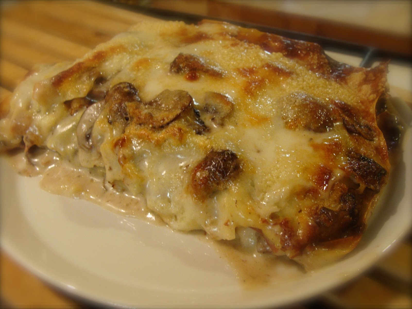 Coprire con un velo di besciamella il fondo della teglia e ricoprire con un primo strato di lasagne e splamate un velo di besciamella. Ricoprire con i formaggi, il parmigiano grattugiato ed i funghi.