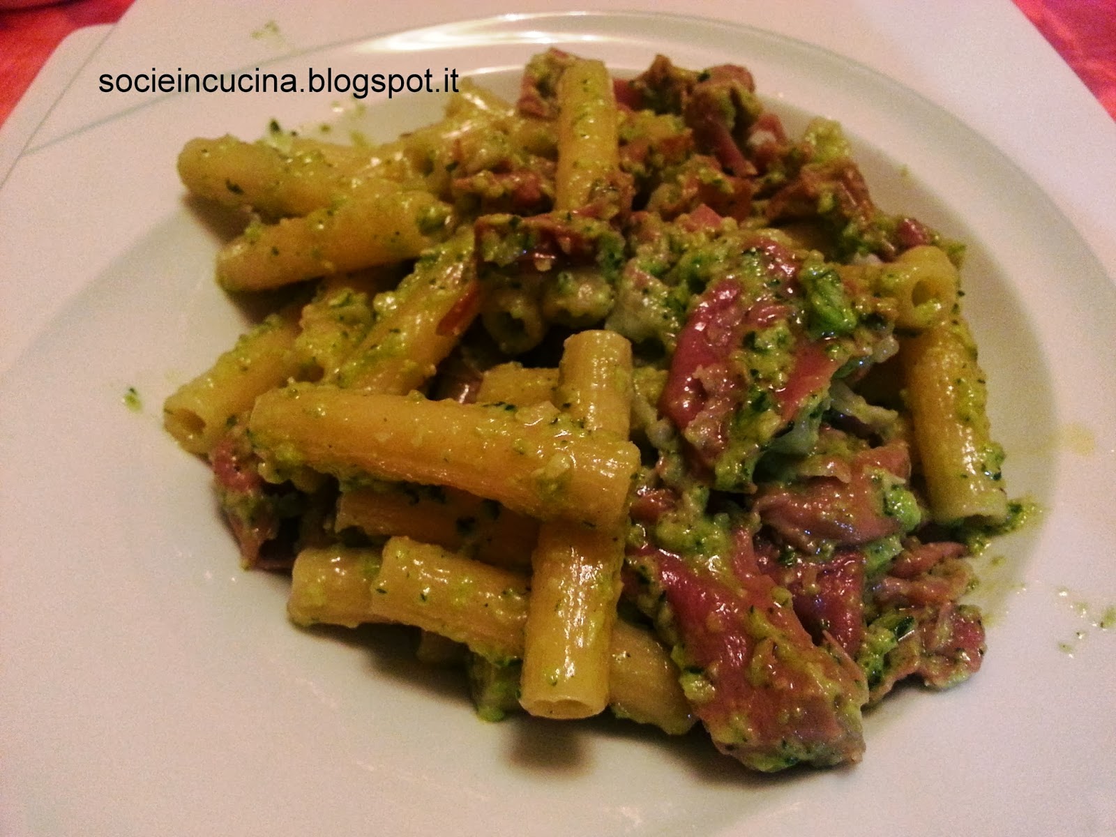 Frullare il tutto aggiungendo man mano l’olio a filo Frullare fino ad ottenere una crema liscia ed omogenea. Fate imbiondire uno spicchio d’aglio in una padella con un filo d’olio e aggiungete il prosciutto crudo tagliatro a straccetti.