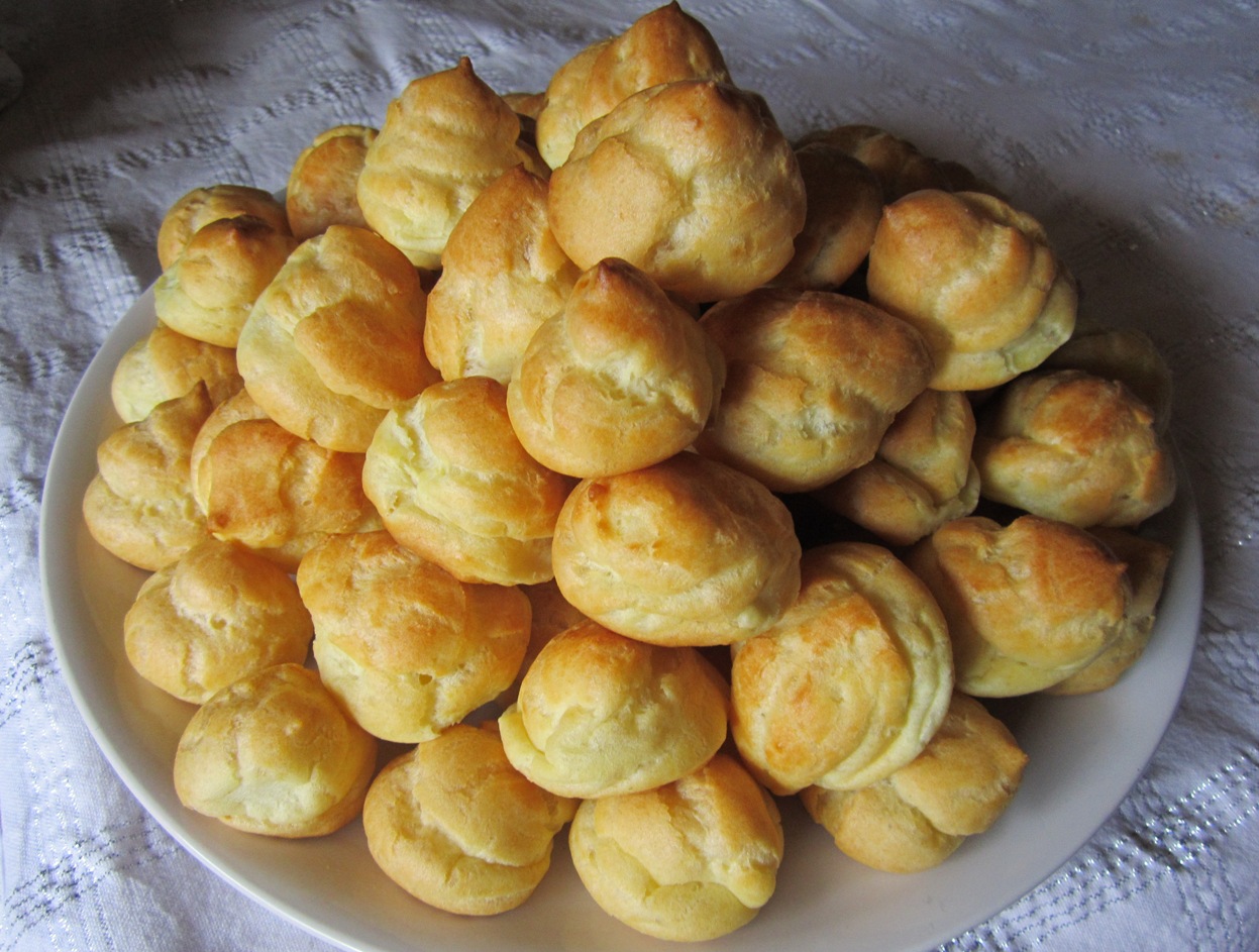 Versare in un tegame l'acqua con il burro e lo zucchero e un pizzico di sale. Non appena l'acqua inizierà a bollire togliere il tegame dal fuoco e aggiungere la farina setacciata mescolando bene e far raffreddare il composto e aggiungere un uovo per volta fin quando non risulta un composto liscio e omogeneo fate cuocere il bignè per 15min.