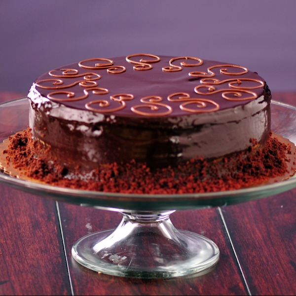 Lasciate intiepidire, poi versare il cioccolato sopra tutta la torta cominciando dai bordi per poi passare al centro. (lasciare un pò di ganache che, messa in una piccola sacca poche con beccuccio a filo e lasciata raffreddare un pochino, servirà per la scritta sulla torta ed eventuali piccoli decori).