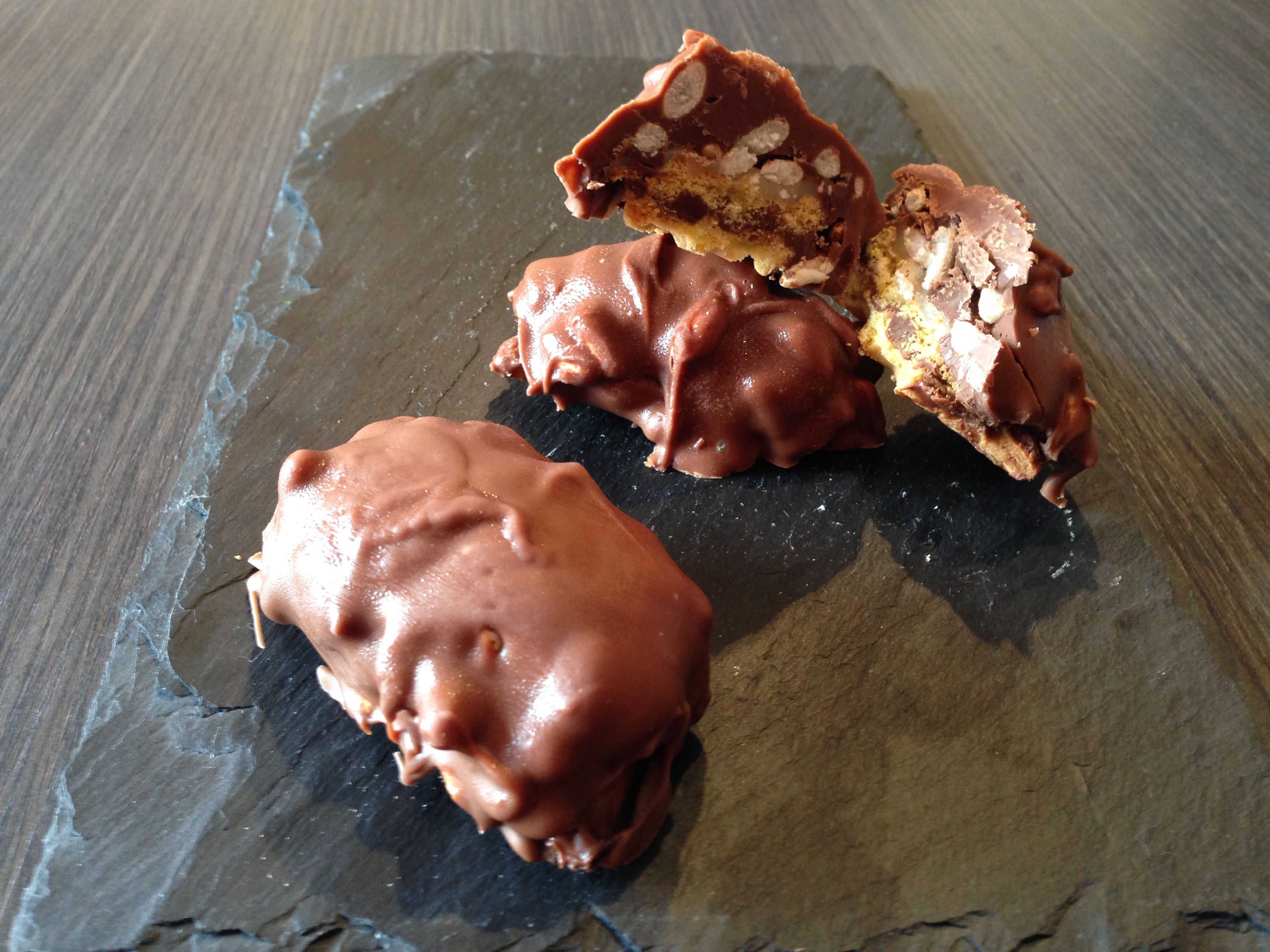 Trascorsa un’ora , sciogliete il cioccolato al latte al microonde e colatelo sopra ad ogni barretta di riso soffiato e wafer, lasciate rapprendere il cioccolato per circa mezz’ora in frigorifero.