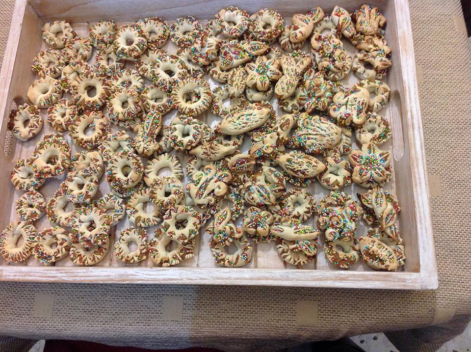 Vengono così lavorati con dei piccoli coltellini apposta secondo la tradizione pantesca, sopra vengono cosparsi di palline di zucchero colorate, codette e altro, dopo di chè vengon cotti in forno a 180°C, non posso dirvi il tempo preciso, sicuramente lo notate dal colore, comunque intorno ai 15 minuti!