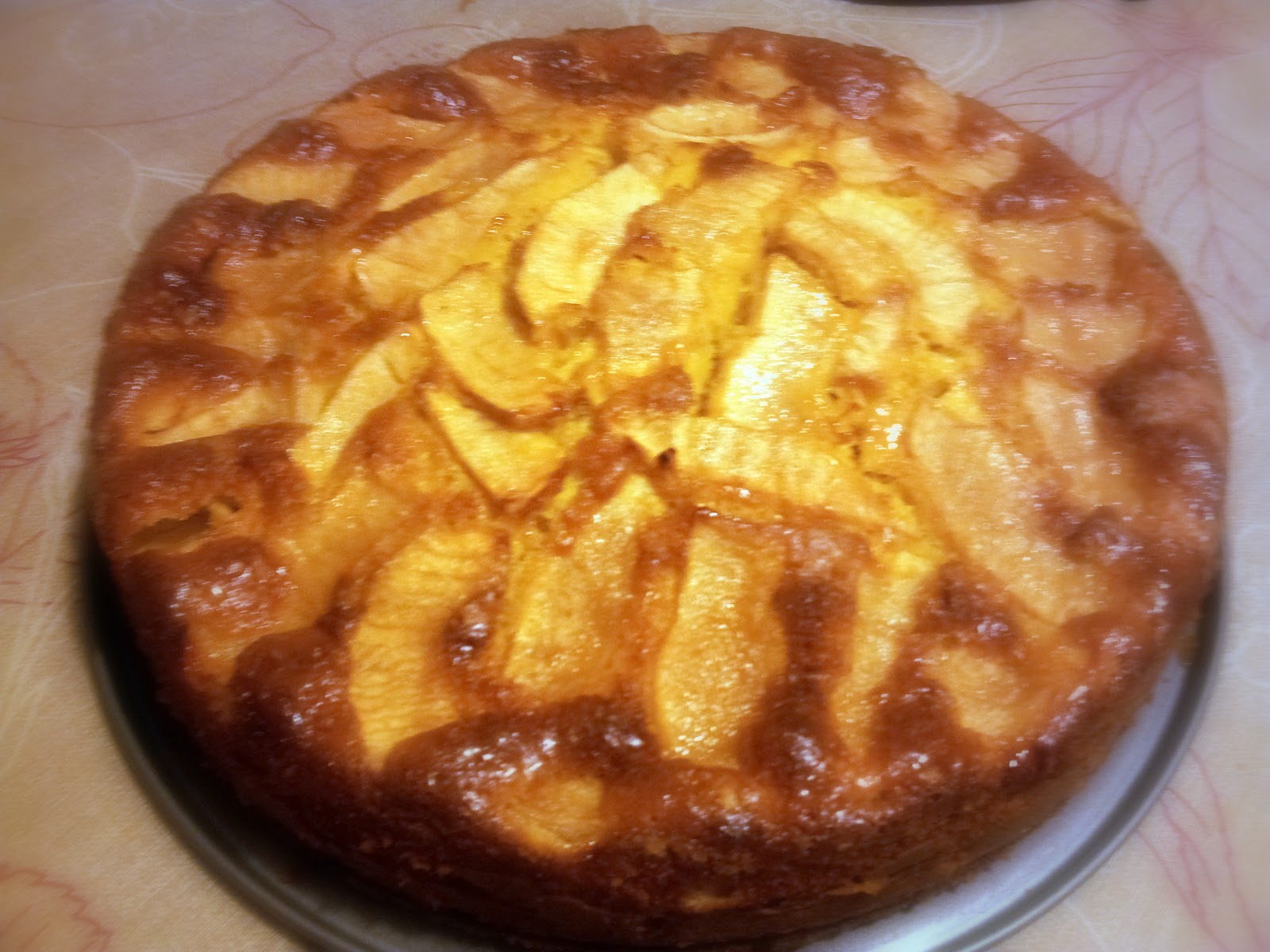 Trasferire il composto ottenuto in una tortiera imburrata ed infarinata, disporvi sopra le mele sbucciate e tagliate a spicchi fini. Cuocere a 180 C° per 30 min. Controllare la cottura con uno stecchino.