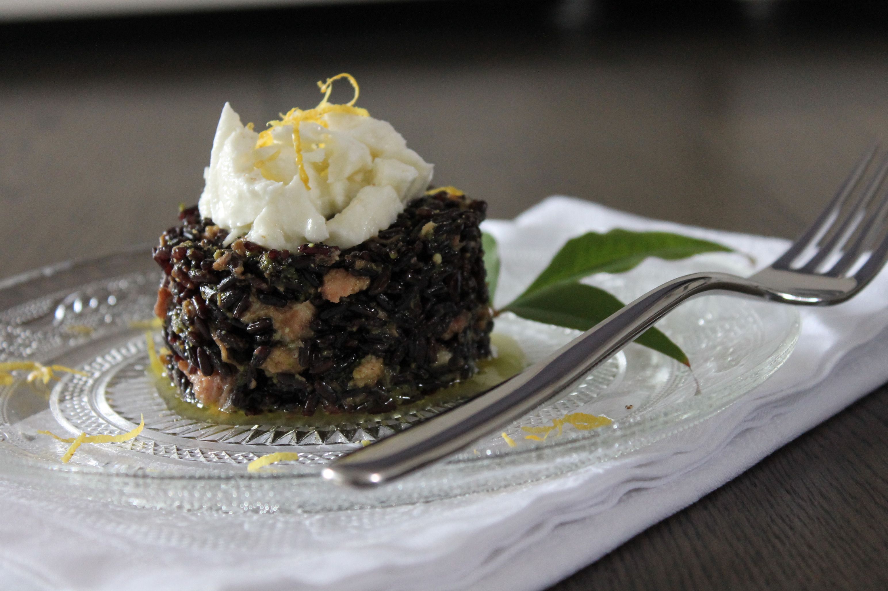Riso venere, con tonno, mozzarella di bufala e pesto