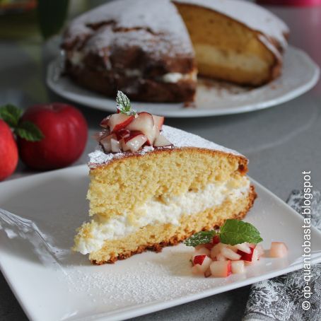 9. Tagliare la torta a metà, farcirla con la crema, coprirla e metterla in frigo per qualche ora.10. Decorate al momento di servire con i pezzettini di pesca conditi con lo sciroppo e spolverizzare con lo zucchero a velo.