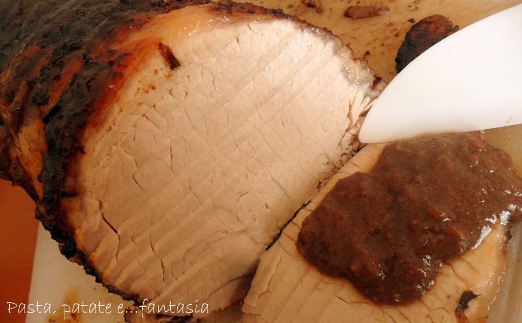 Prima di infornare a 180° per circa 1 ora, salare e aggiungere un filo di olio. Quando la carne sarà cotta, lasciare raffreddare benissimo su un tagliere e frullare il sugo di cottura. Tagliare la carne a fette sottili e riscaldarla leggermente nel proprio sugo prima di servirla.