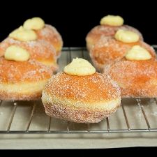 Sciogliete il lievito nel latte aggiungere un pò di farina fino a creare un panetto morbito dopo di che lasciatelo lievitare per qualche ora. Quando è lievitato aggiungete le uova il latte il burro sciolto e la farina, lasciate lievitare nuovamente per qualche ora, dopo stendete la pasta e formate dei cerchi aiutandovi con un copa pasta o con un bicchiere disponeteli sopra un canovaccio e lasciateli lievitare dopo di che friggeteli e riemiteli a piacimento.