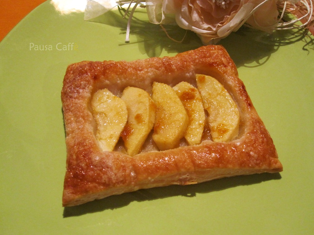 Stendete la pasta sfoglia su un piano di lavoro leggermente infarinato e ritagliate 8 rettangoli di pasta più o meno delle stesse dimensioni. Allineateli su una teglia da forno rivestita di carta antiaderente e spalmate su ognuno di essi un velo di glassa di albicocche (senza utilizzarla tutta), sopra la quale andrete a distribuire le fettine di mele. Infornate in forno preriscaldato a 220°C, per 15-20 minuti. Servite le sfogliatelle cospargendole con la glassa di albicocche rimasta.