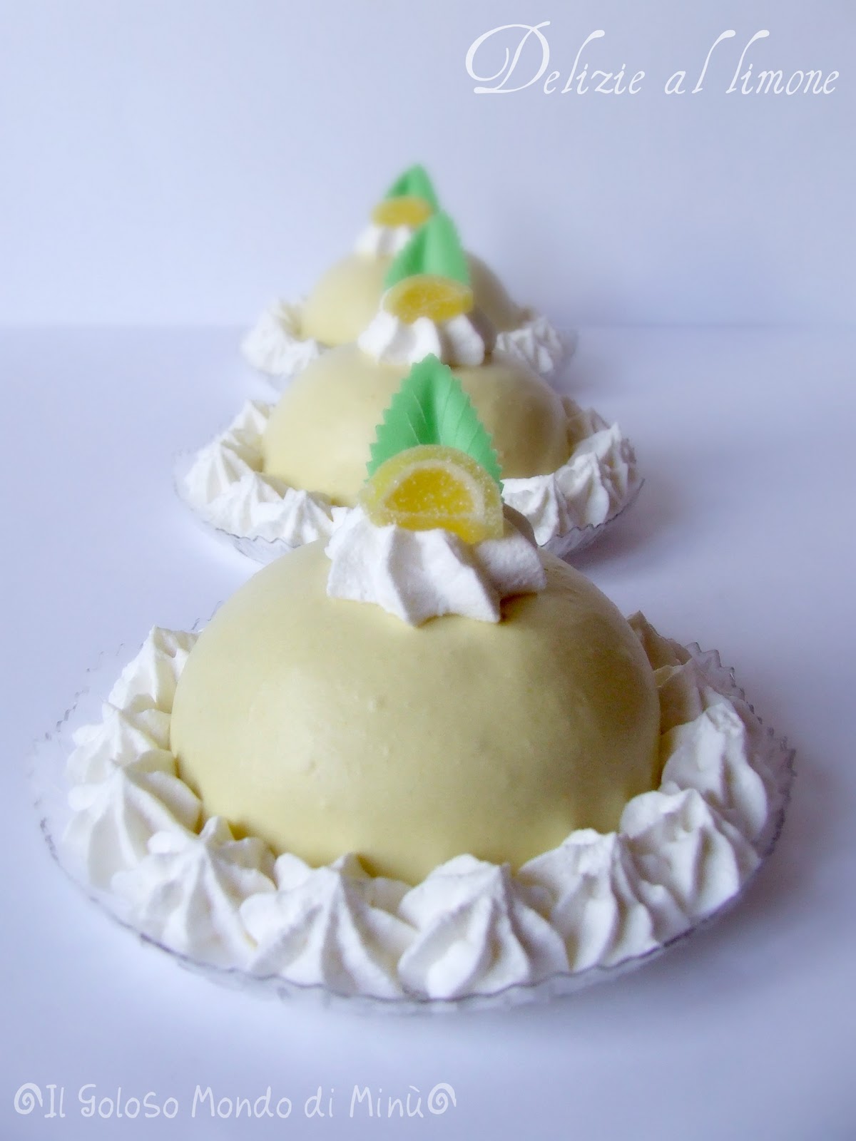 Versate un po’ di crema al limone su un vassoio, disponeteci le delizie precedentemente bagnate e farcite una accanto all’altra. Ricoprite di glassa e decorate con scorze di limone.