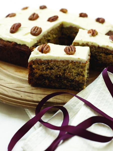 Scaldare il forno a 180° e foderare una teglia rotonda/da ciambella da 23 cm.Sbattere burro e zucchero fino a quando non si ottiene un composto spumoso quindi aggiungere le uova, una alla volta, continuando a sbattere. Alla fine aggiungere all’impasto la farina setacciata mescolando per far amalgamare, il caffé e le noci sminuzzate.
