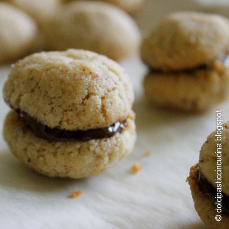 Una volta cotti e raffreddati, appaiateli a 2 a 2 "incollandoli" col cioccolato fondente fuso a bagnomaria, aiutandovi con un cucchiaino.