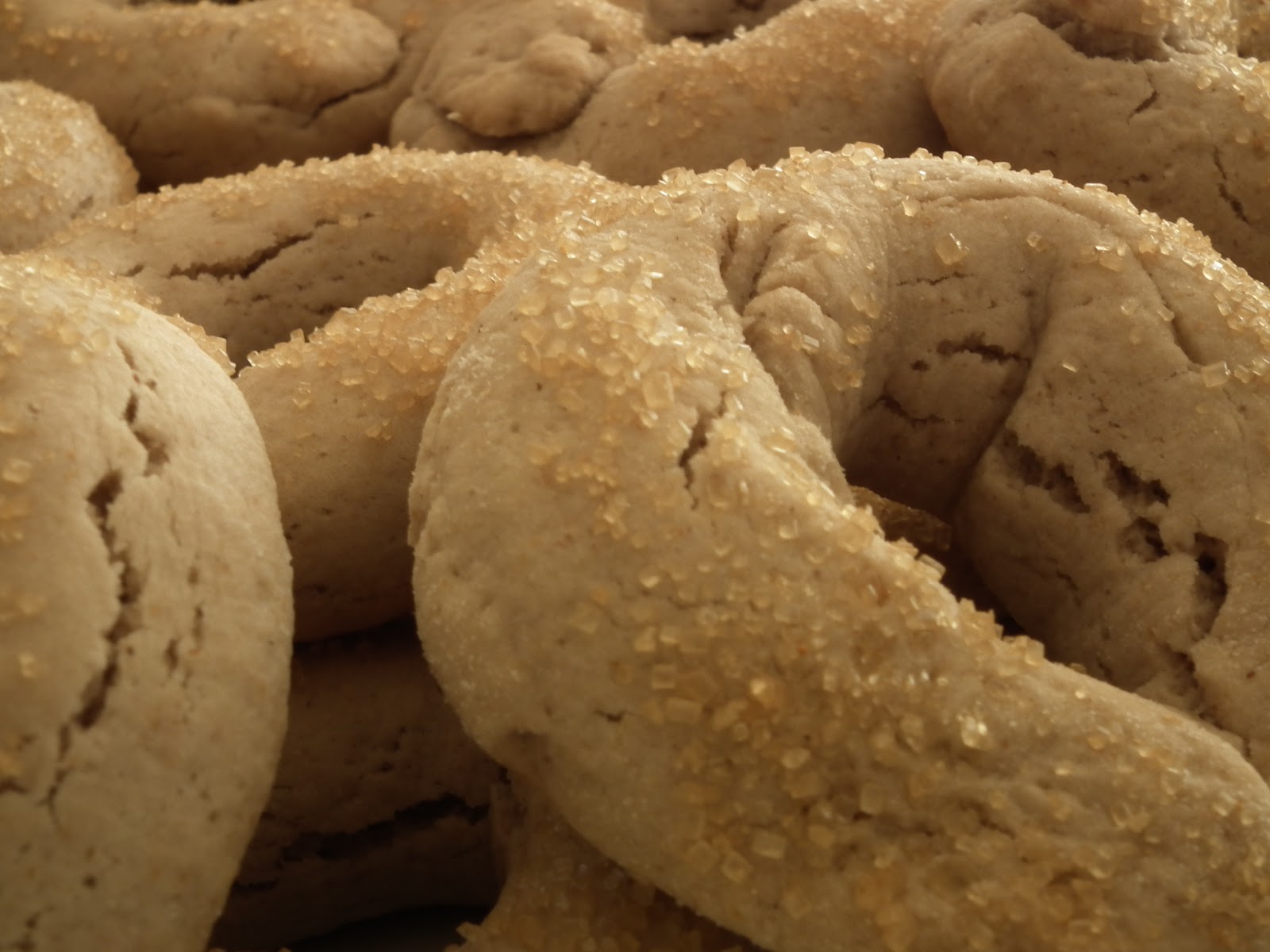 Amalgamare il tutto dare la forma dei tarallucci, cospargere di zucchero semolato, infornare su carta forno e cuocere a 180° per 30 minuti.