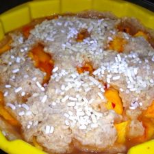 Aggiungere le pesche a quadratini e mescolare nuovamente.