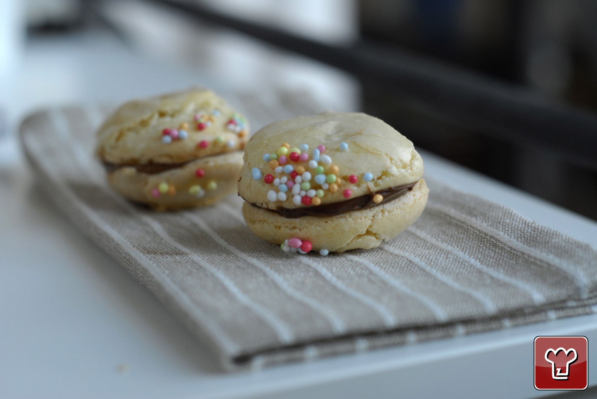 Preparate i macarons. Setacciate la farina con lo zucchero a velo e la farina di mandorle. Montate gli albumi con lo zucchero semolato fino ad ottenere una massa ben soda. Unite mescolando a mano dal basso verso l'alto le farine. Modellate delle palline con un sac a poche sulle teglie con carta da forno. Preriscaldate il forno a 180° C, quindi infornate abbassando il forno a 160° C per circa 6/7 minuti. Lasciate raffreddare quindi staccarli dalla teglia. Preparate la crema. Mescolare nutella e mascarpone. Unire un cucchiaio di panna montata, mescolare. Unire la panna rimanente e mescolare delicatamete dall'alto verso il basso senza smontare il tutto. Farcite con la crema i macarons componendoli due a due, decorate a piacere con zuccherini colorati e servite.