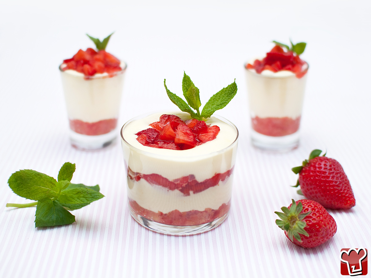 Dividete le fragole dal succo che hanno rilasciato e versate il succo in una ciotola con i savoiardi (oppure se avete frullato le fragole versate la purea). Versate un po' dei savoiadi in un bicchierino. Versate sopra un po' di crema al mascarpone. Infine versate i pezzetti di fragole e decorate con un po' di menta fresca. Volendo se avete recipienti più grandi potete fare più strati di savoiardi, crema e fragole.