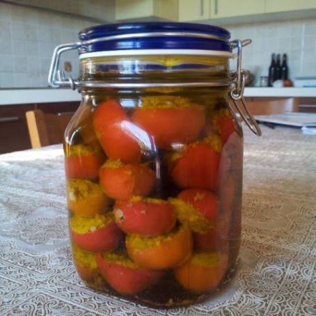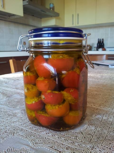 Quando i peperoncini saranno asciutti, riempirli con il composto, metterli in vasetti di vetro con chiusura ermetica e ricoprirli di olio d'oliva.