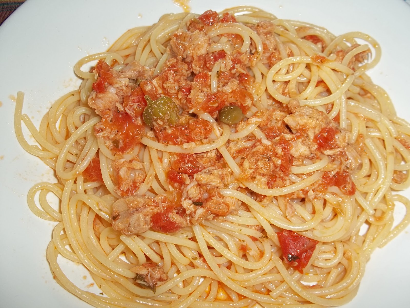 Un ottimo primo piatto di pesce, veloce da preparare e delizioso: gli spaghetti col tonno .