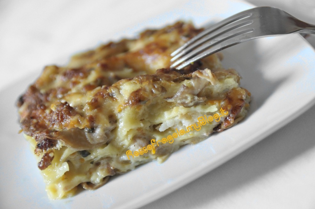 Infine componete l’ultimo strato delle lasagne ai funghi ricoprendo con la besciamella e spolverizzando con il parmigiano grattugiato. Infine componete l’ultimo strato delle lasagne ai funghi ricoprendo con la besciamella e spolverizzando con il parmigiano grattugiato.