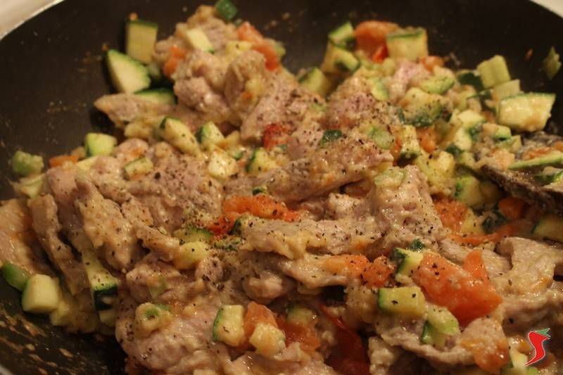 A parte cuocete le zucchine tagliate a rondelle sottilissime e dopo qualche minuto si sarà cotta. Fate saltare il tutto qualche secondo e servite caldo.