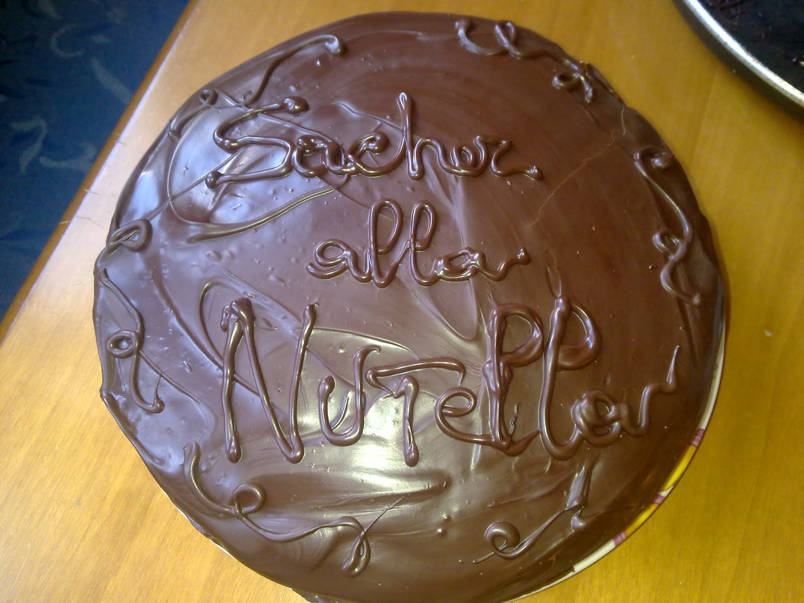Spalmare di nutella la superficie di taglio delle due metà e l’esterno della torta.